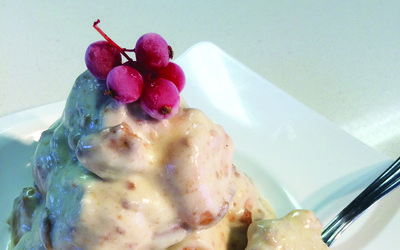 Umplutură pe bază de grăsimi, cu textură cremoasă și gust intens de iaurt și coacăze negre, pentru produse de cofetărie și patiserie.