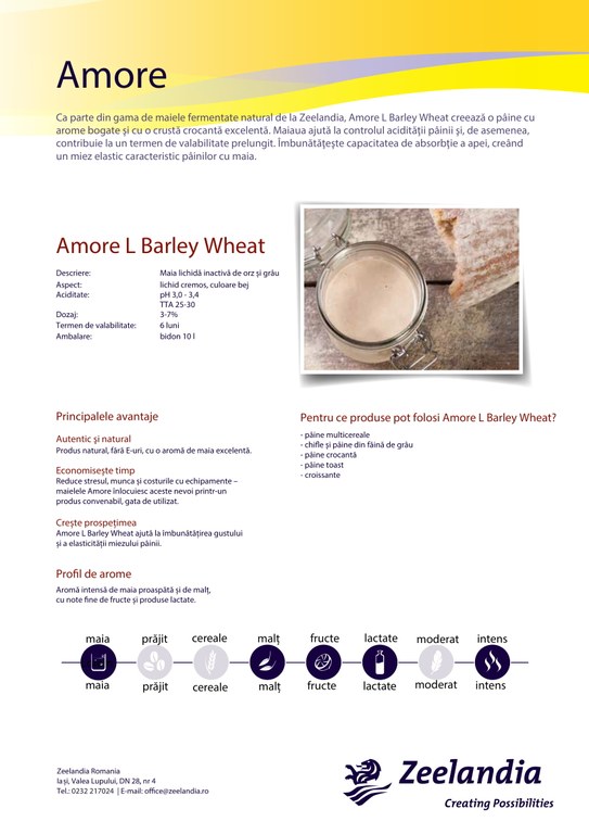 - Amore L Barley Wheat ajută la îmbunătățirea gustului și a elasticității miezului pâinii;